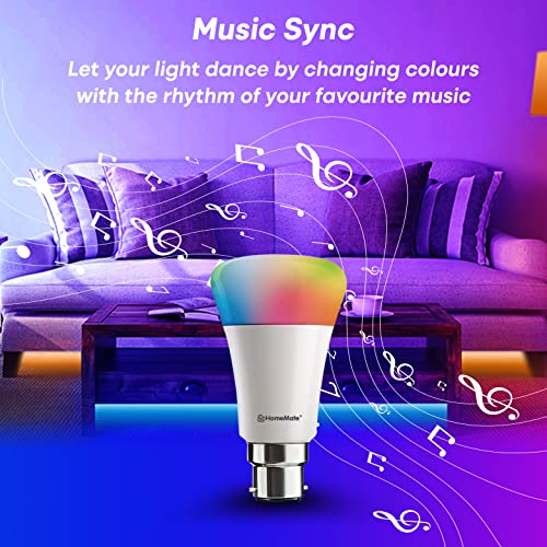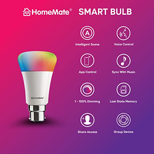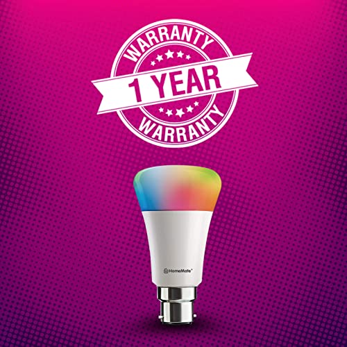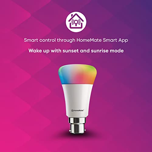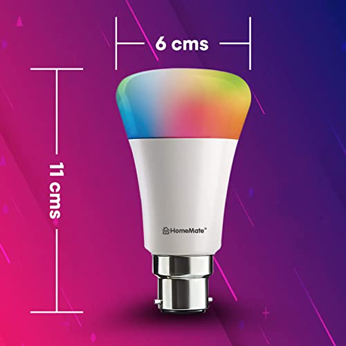 Specification: HomeMate WiFi + Bluetooth Smart LED 9 Watt, B22 Base Music Sync Last State Memory 16 Million Colors Bulb Compatible with…
