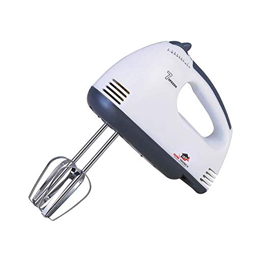 HOMETRONICS 7 Speed Control Electric Hand Mixer with Stainless Steel Beater & Dough Hook (White)