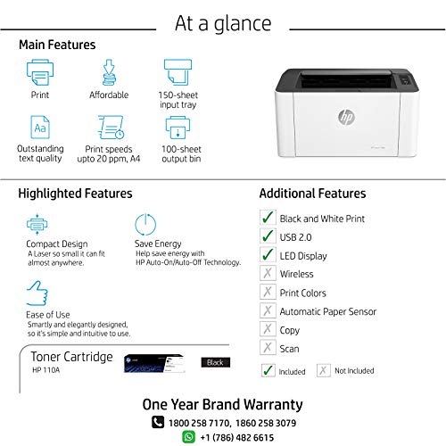 Specification: HP Laserjet 108A Monochrome Laser Printer with USB Connectivity, Compact Design, Fast Printing