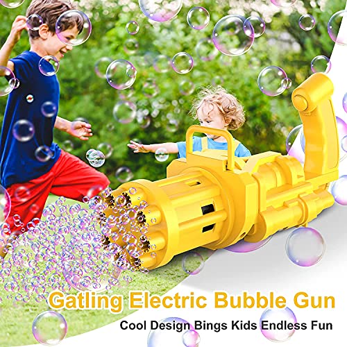 GATLING BUBBLE GUN MACHINE– Innovative Design, Use the “creativity” large bubble gun to surprise children. Adopting Gatling’s appearance structure, 8 bubble holes, hundreds of colorful bubbles can be blown out every minute, Looks cooler and more interesting. The cool bubble gun design and colorful bubbles can satisfy children’s preferences and attract their attention.