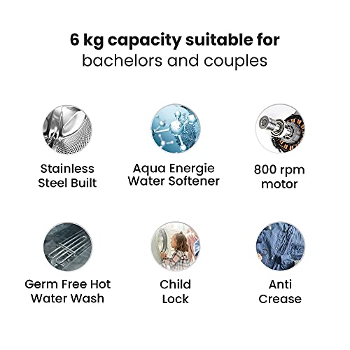 Capacity 6 kg : suitable for bachelors & couples