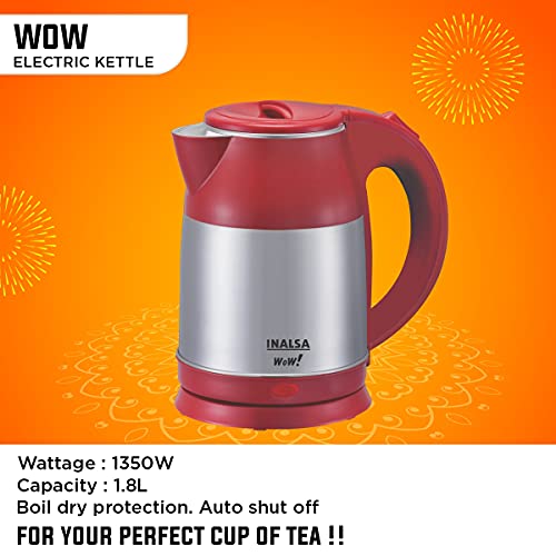 Double Wall Electric Kettle Wow – Powerful 1500Watt | 1.8 Litre Capacity | Boil Dry Protection & Auto Shut Off | Dual Finish Body | Concealed Heating Element | In-Built Filter Sieve| Hinged Lid