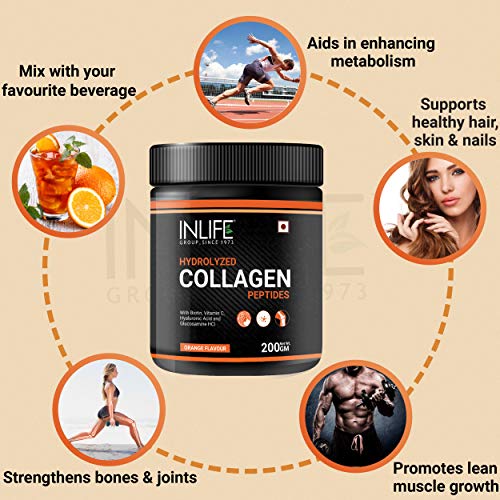 Specification: INLIFE Hydrolyzed Collagen Peptides Powder Supplements Type 1 and 3, 200g |Biotin, Vitamin C, Hyaluronic Acid…