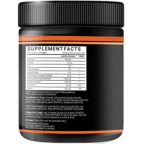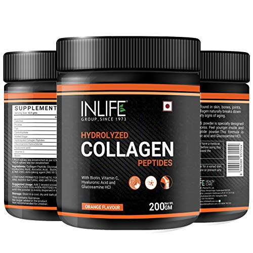 Suggested dosage: Add 2 levelled scoops (12.5 gm) of INLIFE Hydrolysed collagen peptide in 150 ml of water 30 min before breakfast or as directed by your healthcare professional. Stir well until the powder is evenly dispersed in water & drink.