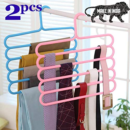 INOVERA (LABEL) 5 Layer Plastic Clothes Hanger (Set of 2), 32l x 1b x 33h cm (Assorted Colour)