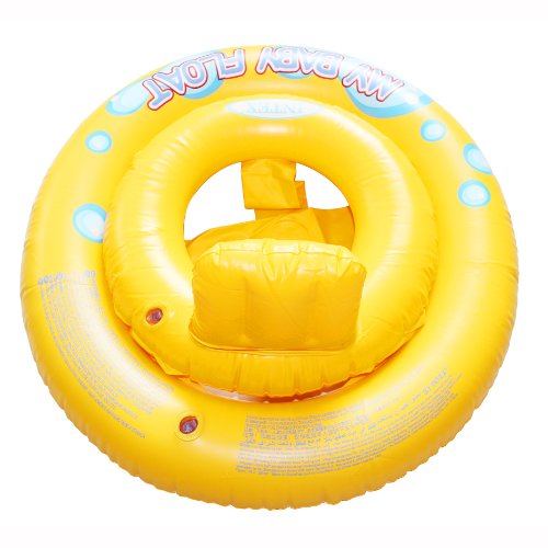 Intex My baby float This 26.5″ Diameter float has a large ring with a smaller inner ring to create stability for baby. Features: pillow backrest smooth seat straps 10 Gauge vinyl 2 air chambers recommended ages: 1 years – 2 years