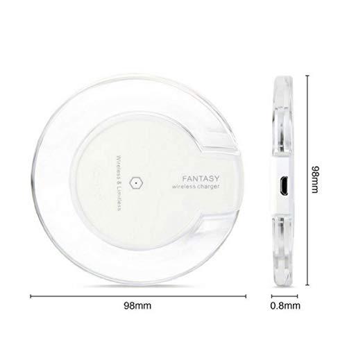 Package includes: 1 X Wireless Charging Pad. AC Adapter is not included in the package. Any charger having micro usb port can be used with this device. Wireless Charging Pad Specification: Input: 5V / 2A Output: 5V / 1A charging distance: 8mm Charging efficiency:75% Executive Standard: Qi wireless charging standard Size: Approx. 100 x 9.5mm Compatible with all QI standard wireless charging phones