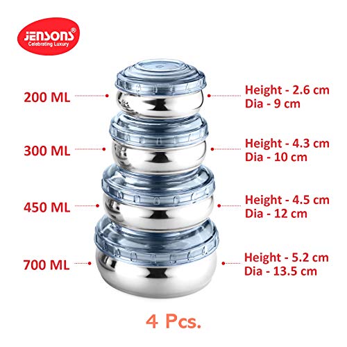 Specification: Jensons Stainless Steel 4Pcs Belly Shape Storage Set with See Thru (Transparent) Blue Color Break Resistant…