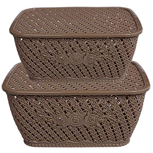 Specification: JRM’s Plastic 2 Pieces Small Size Multipurpose Solitaire Storage Basket for Kitchen, Office, Bedroom, Bath Room with Lid…