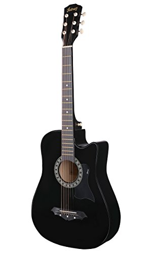 Specification: Juarez Acoustic Guitar, 38 Inch Cutaway with Pick Guard, 38CPG with Bag, Strings, Pick and Strap, Black