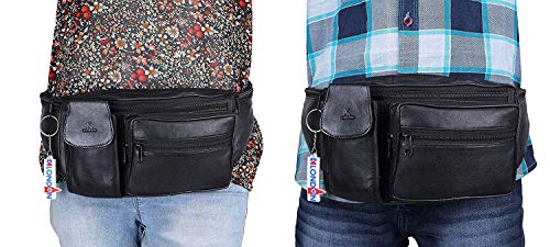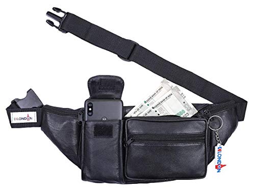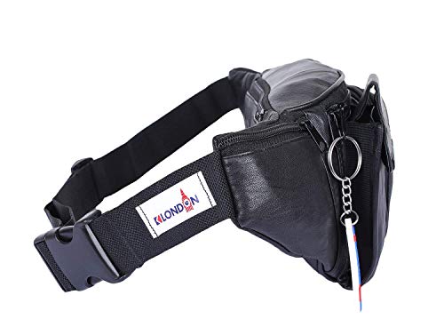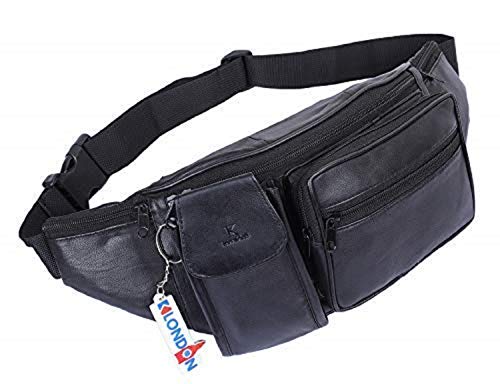 K London Stylish Real Leather Black Waist Bag Elegant Style Travel Pouch Passport Holder with Adjustable Strap(1276_blk)