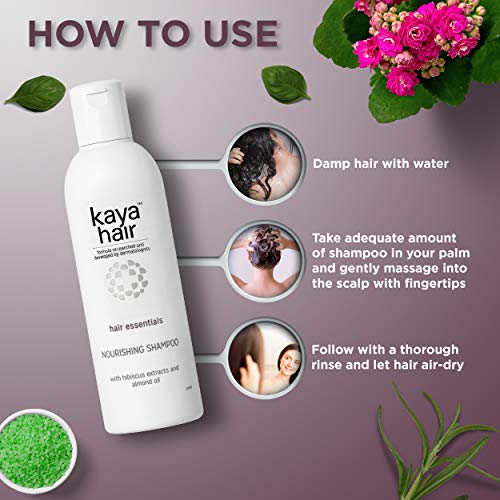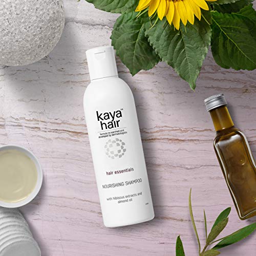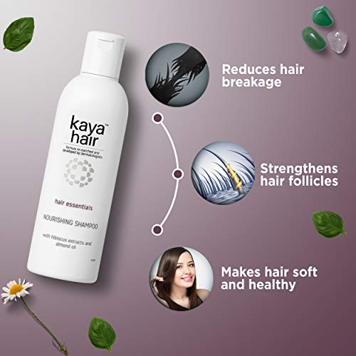 kaya nourishing shampoo is mild enough to use everyday, this lightly fragranced shampoo enriched with hibiscus extracts adds luster to the hair, while almond oil strengthens it from within, reducing hair breakage. Regular use leaves your hair soft and shiny.