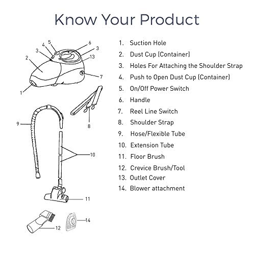 Includes 1 No. Kent Handy Vacuum Cleaner-Red-1 No. Shoulder Strap 1 No. Hose/Flexible Tube 3 Nos. Extension Tube 1 No. Floor Brush 1 No. Crevice Brush/Tool 1 No. Blower Attachment 1 No. User Manual