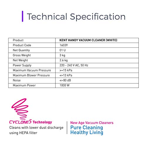 Specification: KENT – 16039 Handy Vacuum Cleaner White