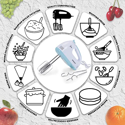 Kitchen Kit 180 Watt Multi-speed Electric Hand Mixer with Beaters, Dough Hooks, and Whisk Attachments