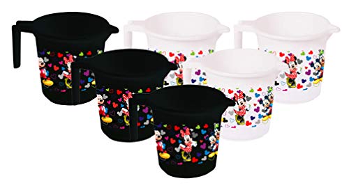 Kuber Industries Disney Team Mickey Print 6 Pieces Unbreakable Strong Plastic Bathroom Mug,500 ML (Black & White…