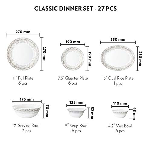 Specification: Larah by Borosil Classic Opalware Dinner Set, 27-Pieces, White