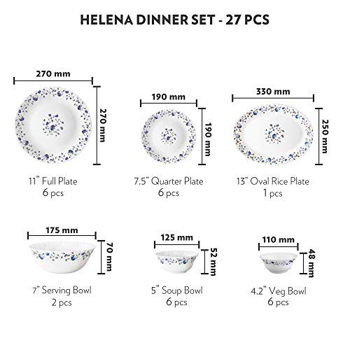 Specification: Larah by Borosil Helena Opalware Dinner Set, 27-Pieces, White