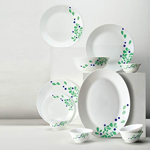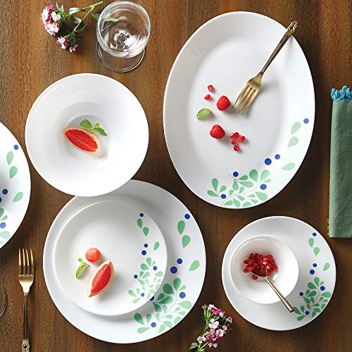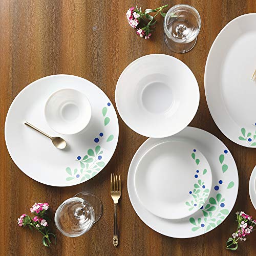 Larah by Borosil – Tiara Series, Foliage, 21 Pcs, Opalware Dinner Set, White