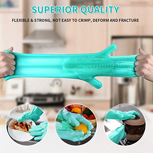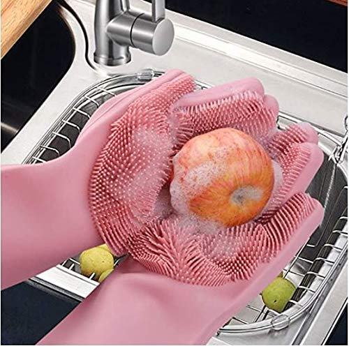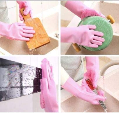 LEAWALL Silicone Cleaning Reusable Heat Resistant Pair of Brush Gloves Scrubber for Kitchen (2 Pack)This soft cleaning gloves is made from food grade silicone, waterproof, anti-odour. Natural grade silicone is gentle on the skin so you will not get allergic reactions.High temperature resistance & easily sterilised, so it can be sterilised with boiling water. It can also be used to move hot dishes or to hold oven dishes.Non-slip textured surface ensure a better grip and control.Multiple cleaning uses,Perfect brush tool for cleaning hard-to-reach areas,can be used in kitchens, dishwashers, fruit and vegetable cleaning, bathroom cleaning, bed cleaning, dusting, pet hair care and car washing,oven cooking and so on.Product Features :(1)EFFICIENT CLEANING :your hands no longer need to be occupied with a sponge. Just simply put the magic silicone gloves on, rinse with water, apply soap, and simply scrub & clean with just your hands!(2)SCRUBBING POWER :equipped with hundreds of scrubbing bristles to effectively remove stubborn greases, oils, and dirts.(3)MULTI USE :works extremely well to scrub and clean dirt’s away from plates, cups, cutlery, carpets, floors, sinks, shower tubs, toilets, tables, cabinets, pet hairs, and just about anything else!(4)COMFORTABLE :using a free handed motion makes it much easier to clean in harder to reach spots, and the silicone dish washing gloves is also beneficial for those who may suffer from hand pain or arthritis.(5)DURABLE & ECO-FRIENDLY :this silicone gloves with wash scrubber is made with heat resistant FDA-approved silicone. coated with anti-microbial properties to resist bacteria build up! Great for cleaning kitchen, dish washing or cleaning the car.