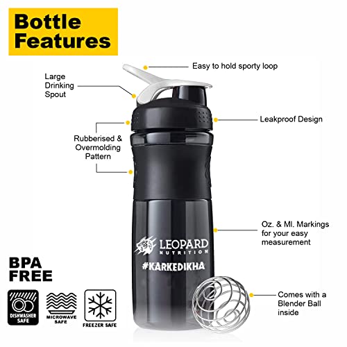 Specification: LEOPARD NUTRITION Polyethylene Protein Shaker Bottle, Leak Proof Bpa Free (Black-760Ml, Pack Of 1)
