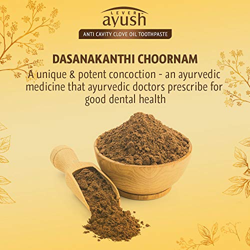 Lever ayush anti cavity clove oil toothpaste is formulated with 5000 years of ayurvedic wisdom to give you strong teeth and healthy gums. It contains the goodness of clove oil (lavang ka tel) that has been used since ancient times as a medicine for dental care. Its powerful quality relieves toothache and spicy aroma imparts fresh breath. Dasanakanthi choornam which is a unique blend of 15 natural herbs like babul, yashtimadhu, camphor and pippali which is well known to treat toothache and bleeding gums. With combination of Clove oil and dasanakanthi choornam you get a refreshing breath and all-round protection to your teeth and gums. The Lever ayush range of products have been carefully crafted with authentic recipes and processes prescribed in the ancient granthas. Traditionally, ayurvedic ingredients are consciously picked at a certain time of the day, when they are most potent to create extremely effective ayurvedic solutions. We work with world’s premier ayurvedic institute, Arya Vaidya Pharmacy (AVP) to create products that use the most potent ingredients that are highly beneficial for you to deal with modern day problem in a traditional and authentic way. Lever Ayush has an extensive range of products for Oral care, Hair care and Skin care.