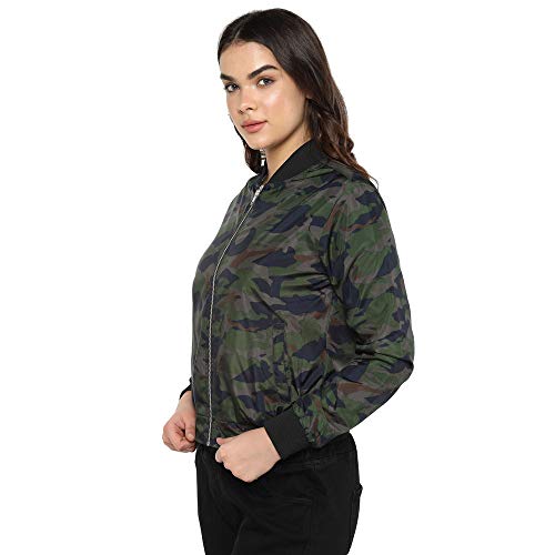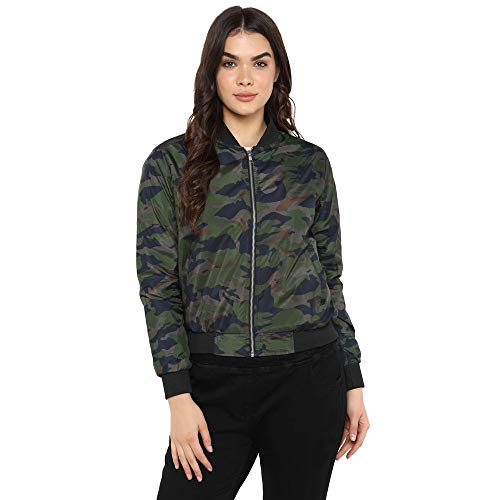 Life by Shoppers Stop Womens Zip Through Neck Camouflage Bomber Jacket