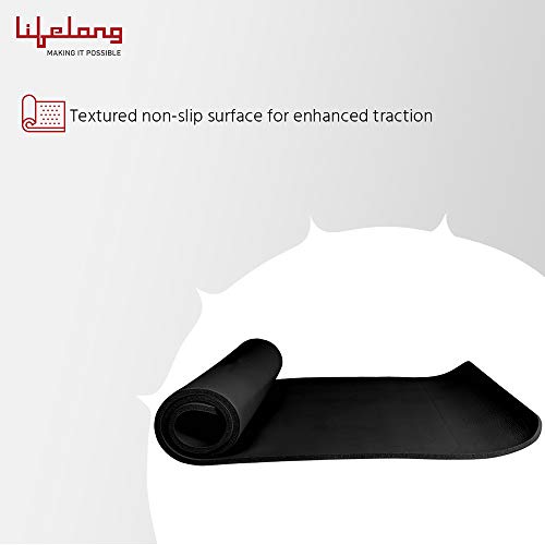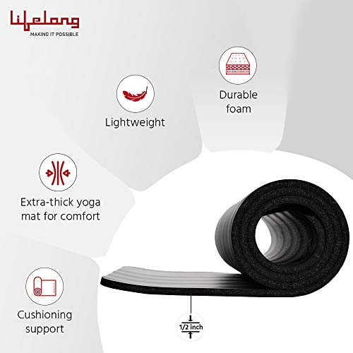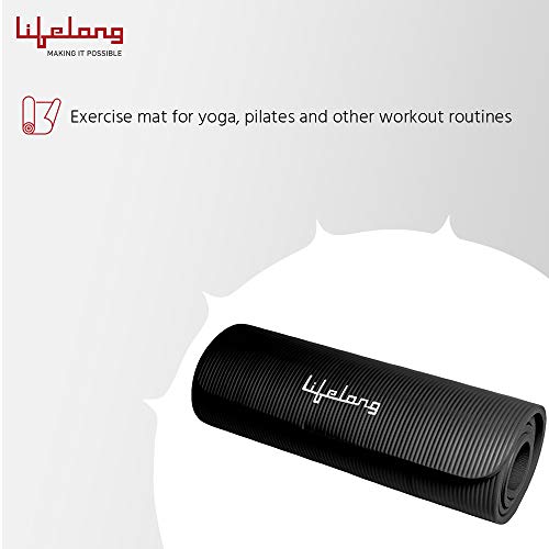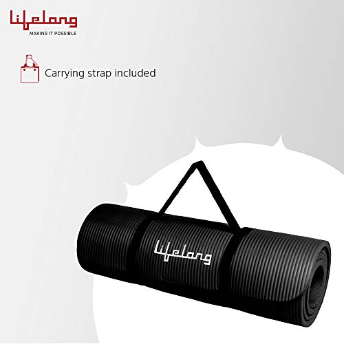 Lifelong LLYM05 Foam 13mm Extra Thick Yoga and Exercise Mat with Carrying Strap, Medium (Black)