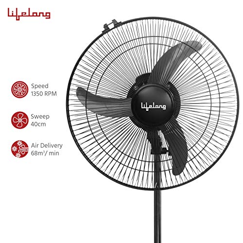 Specification: Lifelong LLPF02 Toofan Pedestal Fan | High Speed: 1900 RPM | Sweep: 400mm (Black, Grey)