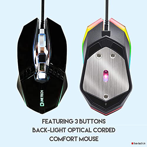 Live Tech Evon Wired Gaming Combo with LED Backlit USB Keyboard & Mouse Gold Plated USB, Braided Cable (Does not Support…