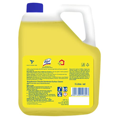 Specification: Lizol Disinfectant Surface & Floor Cleaner Liquid, Citrus – 5 Litre | Suitable for All Floor Cleaner Mops | Kills 99.9…