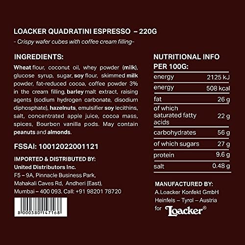 Specification: Loacker Quadratini Espresso 220g – Italy