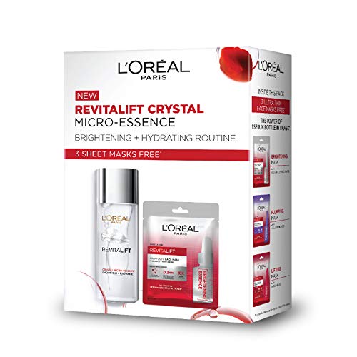Specification: L’Oreal Paris Crystal Micro-Essence 65ml and 3 Revitalift Essence Sheet Masks Free, 155 g (Pack of 4)