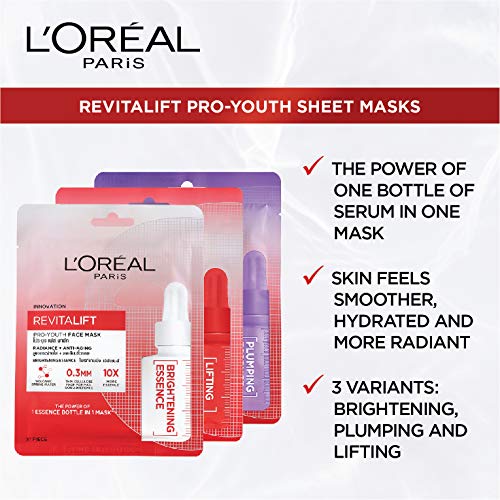 Revitalift pro youth radiance sheet mask is enriched with skin active brightening essence that improves skin transparency and radiance