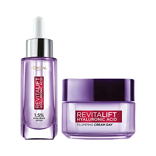 L’Oreal Paris Skincare Routine, Hydrated, Plump Skin Combo, With Hyaluronic Acid, Revitalift Hyaluronic Acid Serum, 15ml + Hyaluronic Acid Plumping Day Cream, 15ml