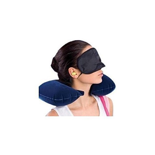 Three Tourists Treasures – Includes 2 Anti-Noise Earplugs, Superfine Inflatable Travel Pillow and Eye Mask.