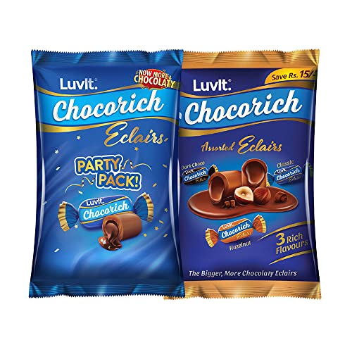 Specification: LuvIt Chocorich Assorted Eclairs | Birthday Party Pack | Hazelnut, Dark Choco, Chocolate Eclairs Candies | Pack of 2-870…