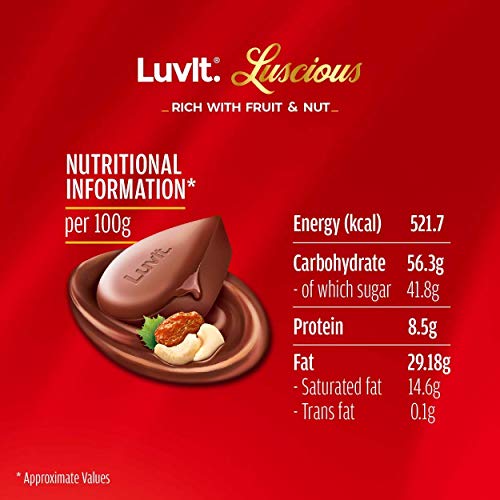 Specification: LuvIt Luscious Fruit & Nut Chocolate Bars | Multipack | Deliciously Smooth Chocolates | Pack of 20-46g Each
