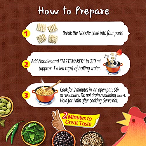 DELICIOUS SNACK: Contains a noodle cake and your favorite masala tastemaker inside, for quick and easy preparation