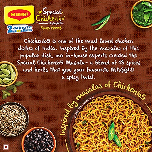 SPICY, YUMMY NOODLES: MAGGI Special Chicken65 Masala Noodle is an instant noodles brand manufactured by Nestle