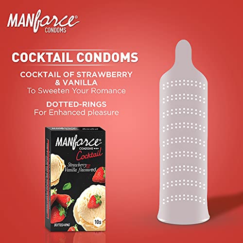 Specification: Manforce Cocktail Strawberry & Vanilla Flavoured Condoms for Men with Dotted Rings| Double the Fun with Double Flavour…