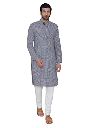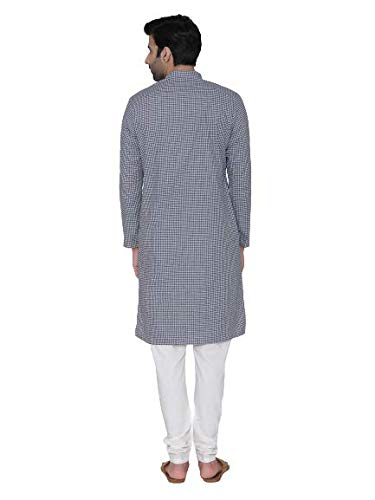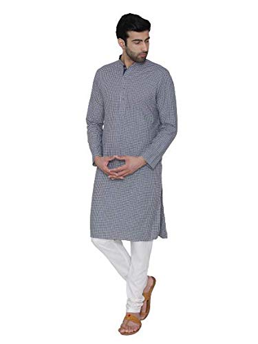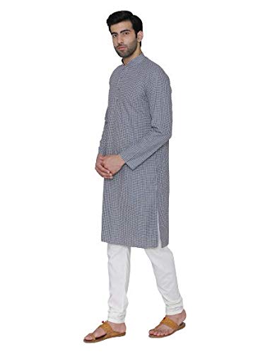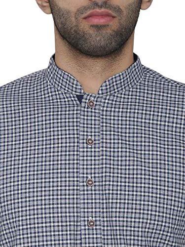 Specification: Manthan Self Design Striped Full Sleeves Casual Wear Art Silk Kurta for Men Checkered Design Kurta (Blue)