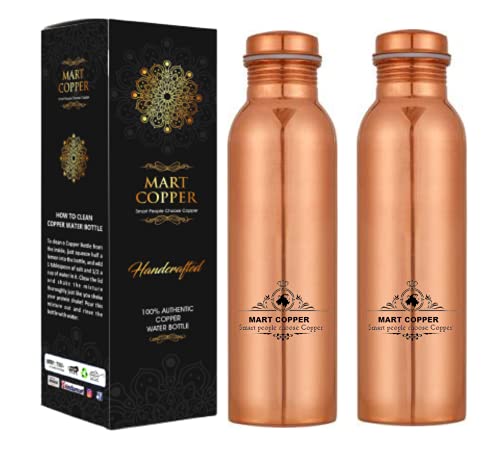 MART COPPER copper water bottle 1000ml, for Drinking Water, Leak Proof, 100% Pure Copper Water Bottles pack of 2 pcs