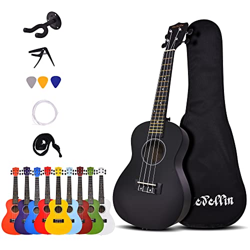 Medellin 23” Carbon Fiber ukulele (with free online learning course) Concert Black Ukulele + Bag, Strap, Capo, 3 picks…
