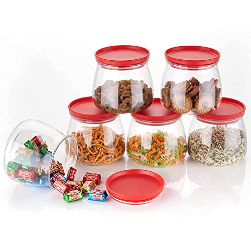 Package Content: 6 Pcs Container Jar Set With Cap | Material: BPA free Plastic | Airtight / 100% Leak Proof. | Capacity: 900 ml | Color: transparent.