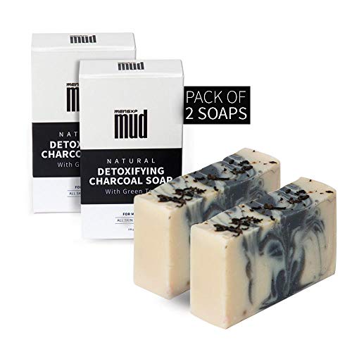 MensXP Mud Natural Handmade Detoxifying Activated Charcoal Soap With Black Clay, Shea Butter & Green Tea, Cold Pressed…