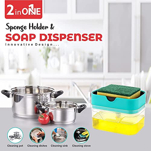 MG CHOICE Plastic 2 in 1 Soap Dispenser for Dishwasher Liquid Holder,Liquid Dispenser Through Pump 400 ML with Sponge…