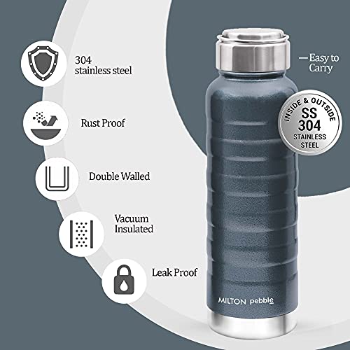 Milton Pebble 710 Thermosteel 24 Hours Hot and Cold Water Bottle, 710 ml, Blue