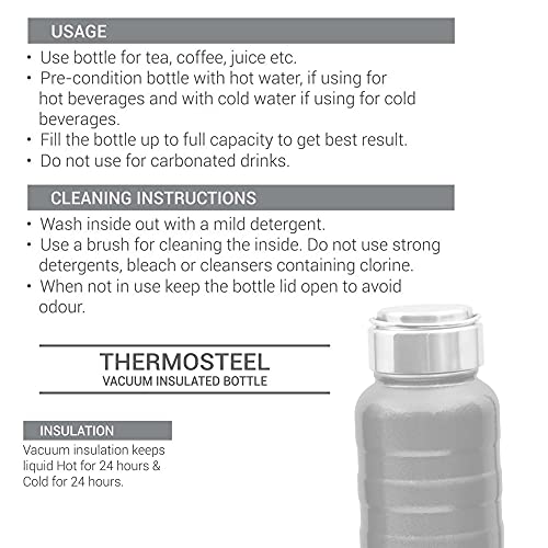 Specification: Milton Pebble 710 Thermosteel 24 Hours Hot and Cold Water Bottle, 710 ml, Blue