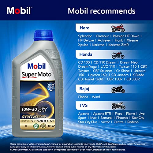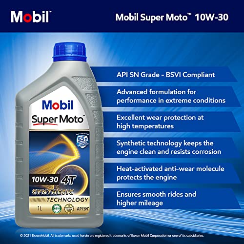 Specification: Mobil Super Moto 10W-30 API SN 4T Premium Technology Engine Oil for Bikes (1L)